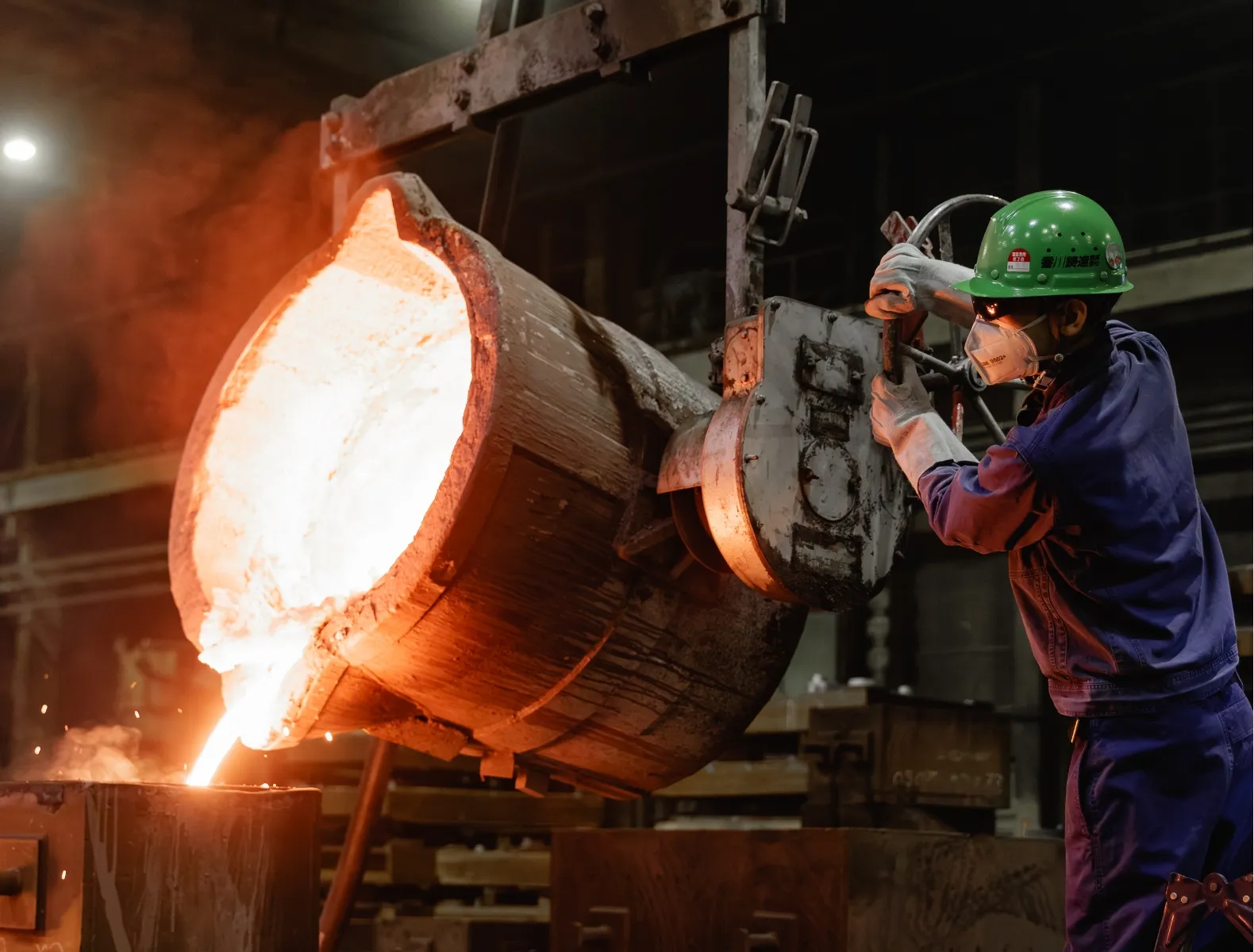 現在の仕事は、電気炉で溶かされた「湯」(鉄)を大・中・小のサイズ別ラインの「砂型」に流し込む作業を行っています。1500℃もの熱を持つ素材をあつかう「非日常の世界」ですが、お客様からの注文の品を、まだカタチのないところからカタチにする、創り出す最初のステップでもあり、僕はそこに一番やりがいを感じています。